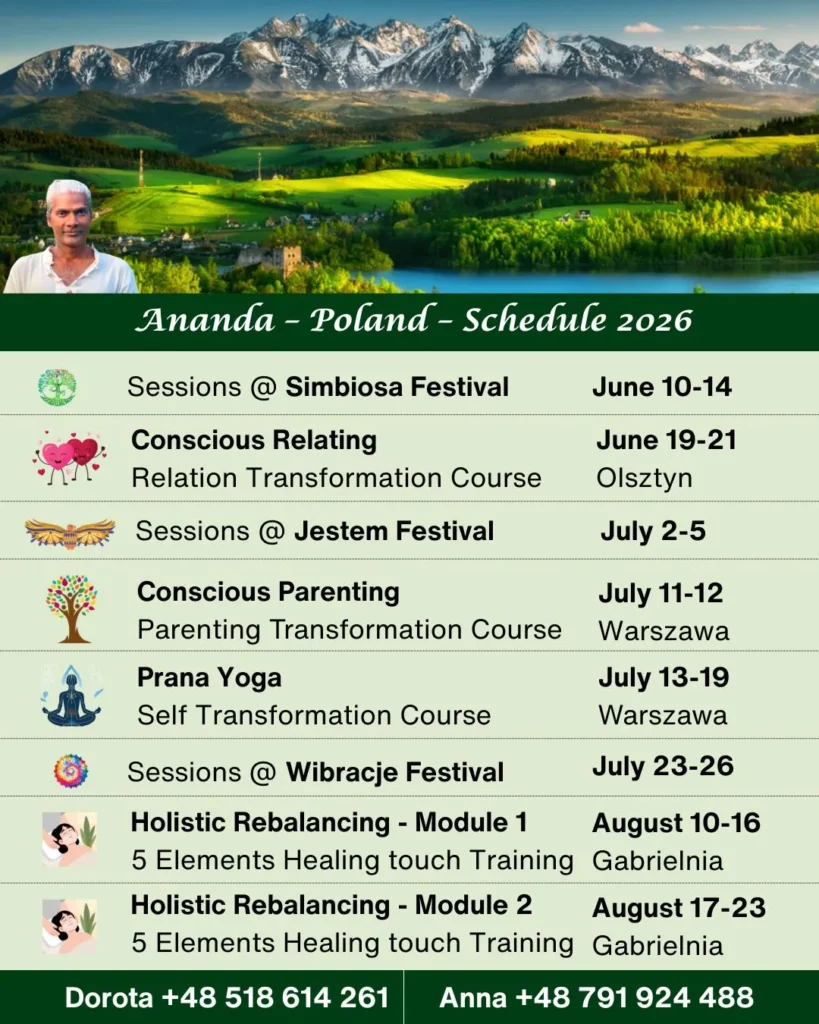 Courses in Poland Courses in Poland by Bodhi Vanam Team 1 1 people viewed this event. Register for event To register for this event email your details to ananda.inner@gmail.com Register using webmail: Gmail / AOL / Yahoo / Outlook Date And Time 2026-06-01 to 2026-08-31 Registration End Date 2026-06-01 Location Poland Share With Friends Facebook Twitter Linkedin Xing Pinterest